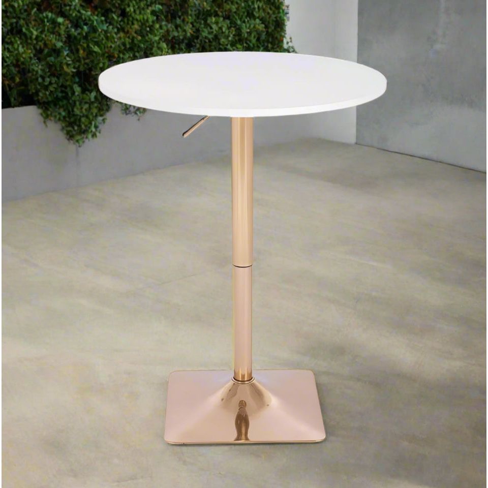 שולחן בר עגול לבן 70 ס"מ רגל מרובעת זהב