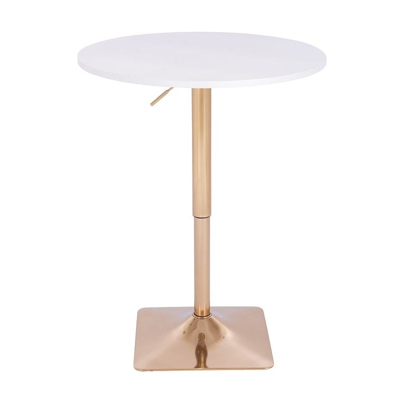 שולחן בר עגול לבן 70 ס"מ עם רגל מרובעת בצבע זהב.