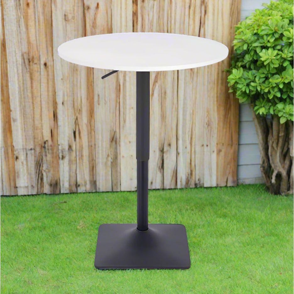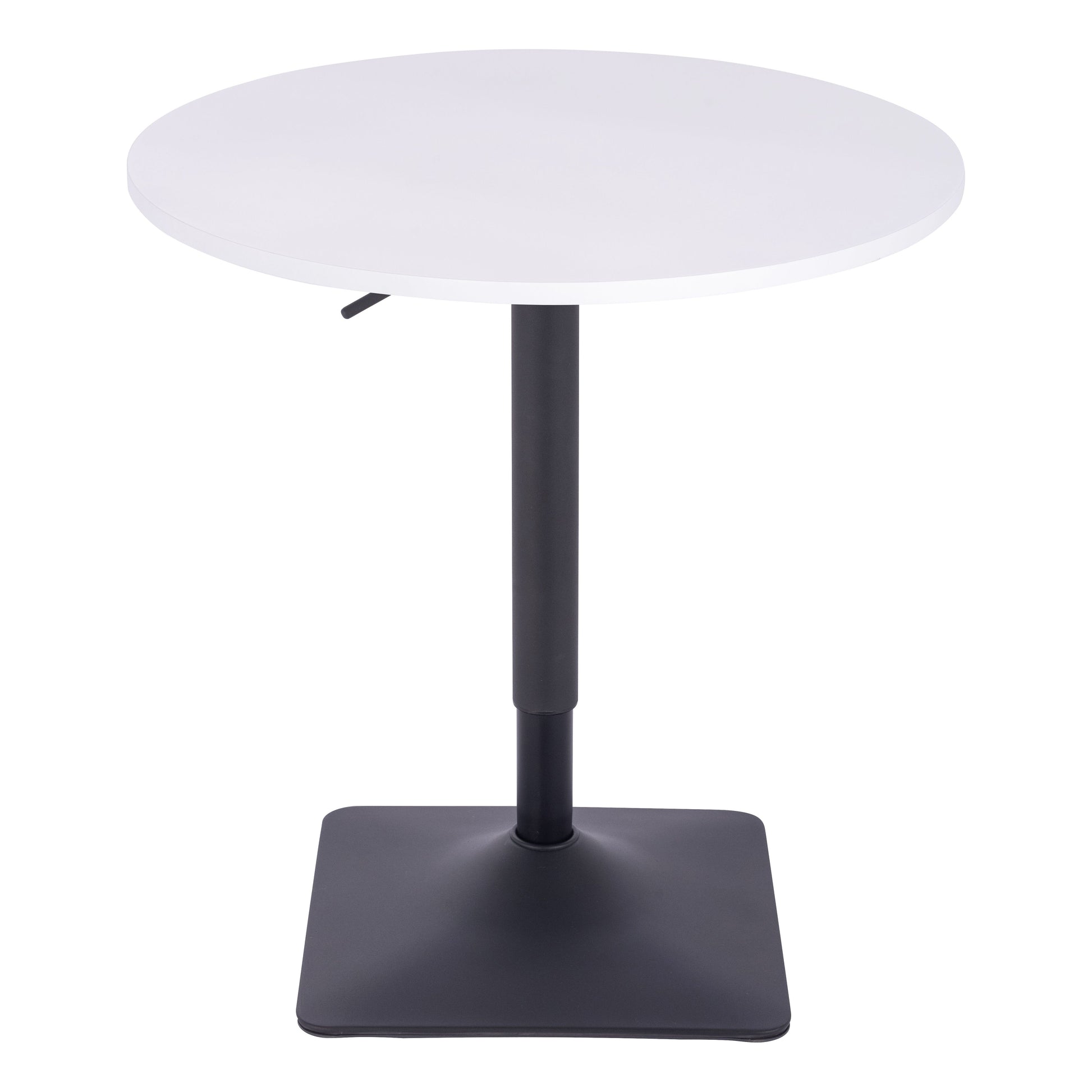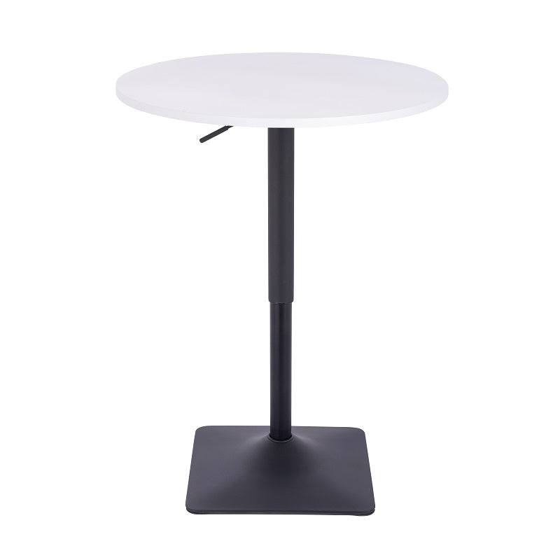 שולחן בר עגול לבן, 70 ס"מ, רגל מרובעת שחור.