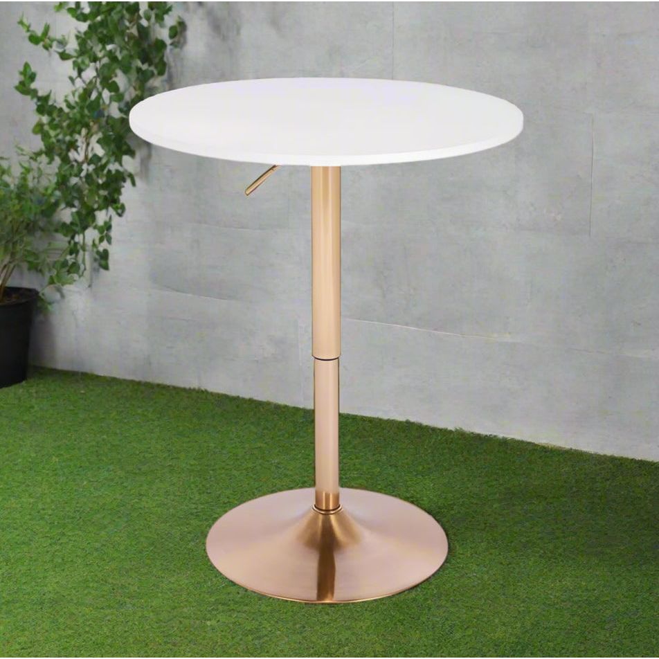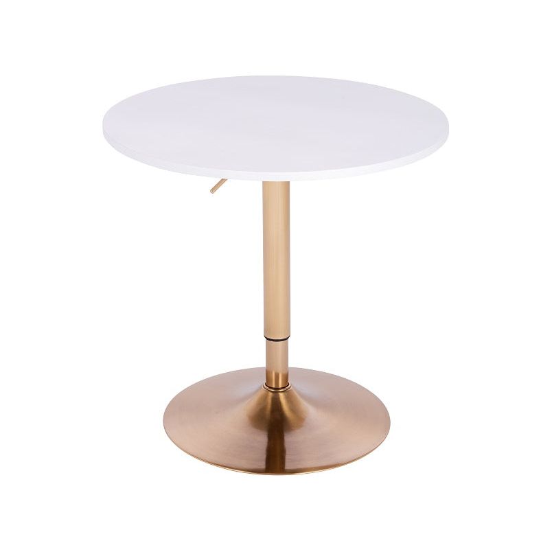 ניתן לכוון את גובה השולחן בטווח של 68-88 ס"מ. שולחן בר עגול לבן 70 ס"מ רגל עגולה זהב
