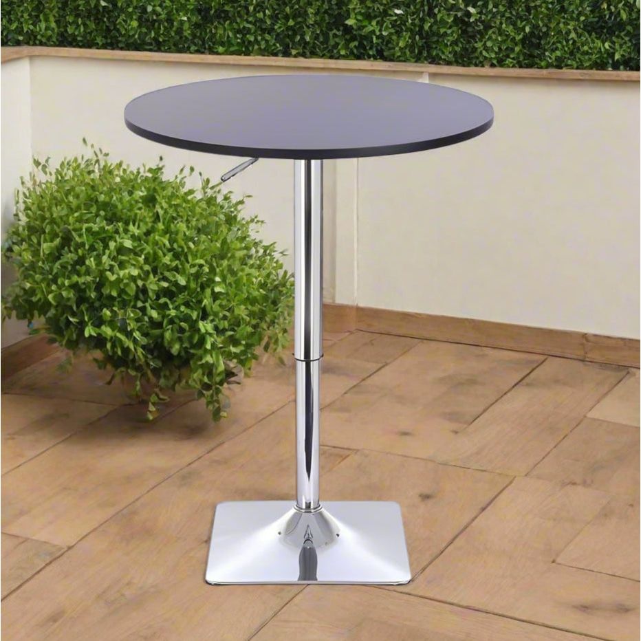 שולחן בר עגול שחור 70 ס"מ רגל מרובעת כרום