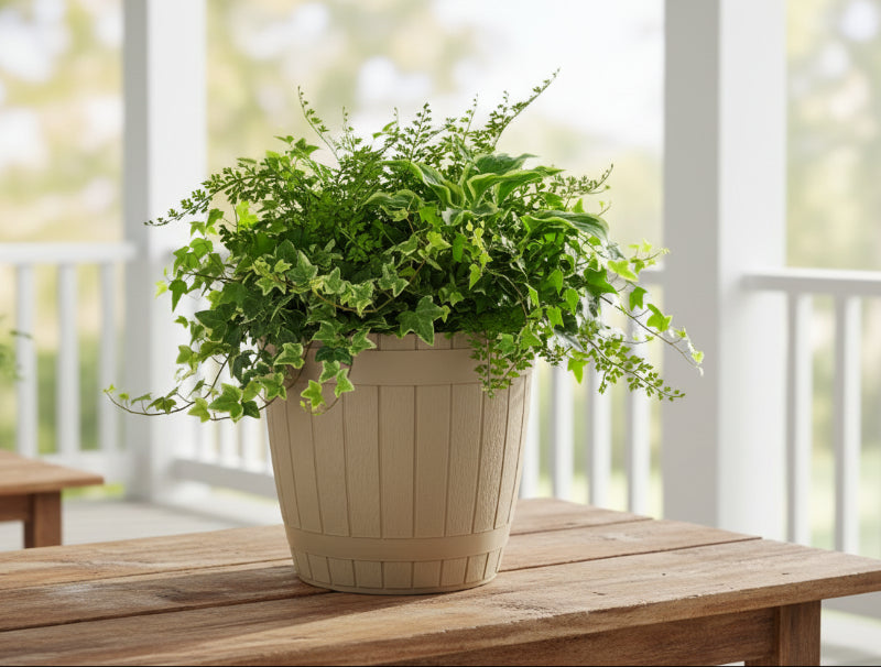 אדנית למרפסת דמוי חבית 2.3 ליטר.