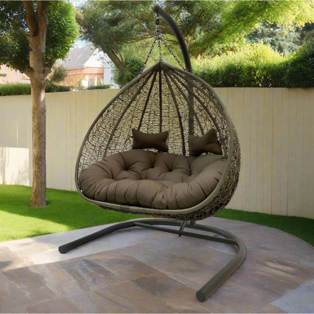 ערסל ישיבה כפול ראטן חום הכולל כרית מפנקת במיוחד