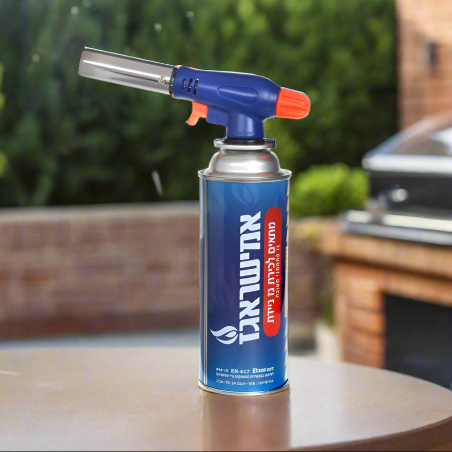 מבער גז רב שימושי מופעל באמצעות מיכל 220 גרם עם שסתום.