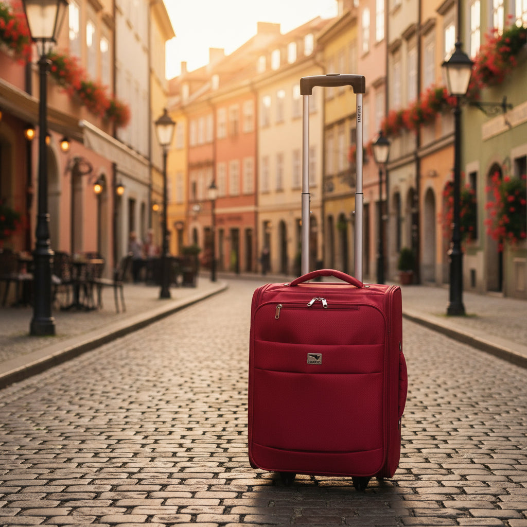 מזוודת טרולי מתקפלת וקלת משקל בצבע אדום.