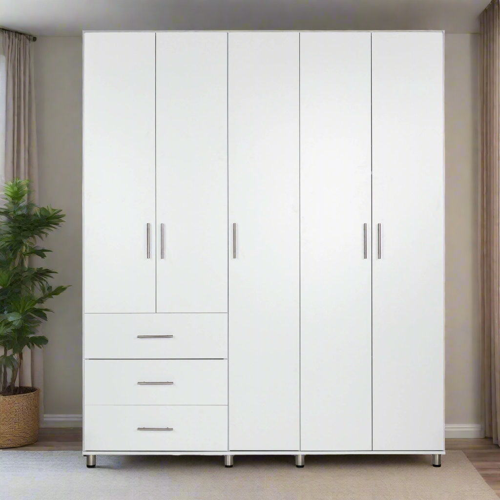 ארון בגדים אלון 5 דלתות + 3 מגירות לבן