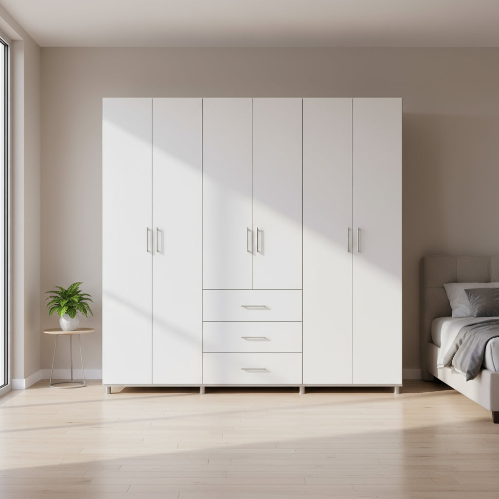 ארון בגדים אלון 6 דלתות + 3 מגירות לבן