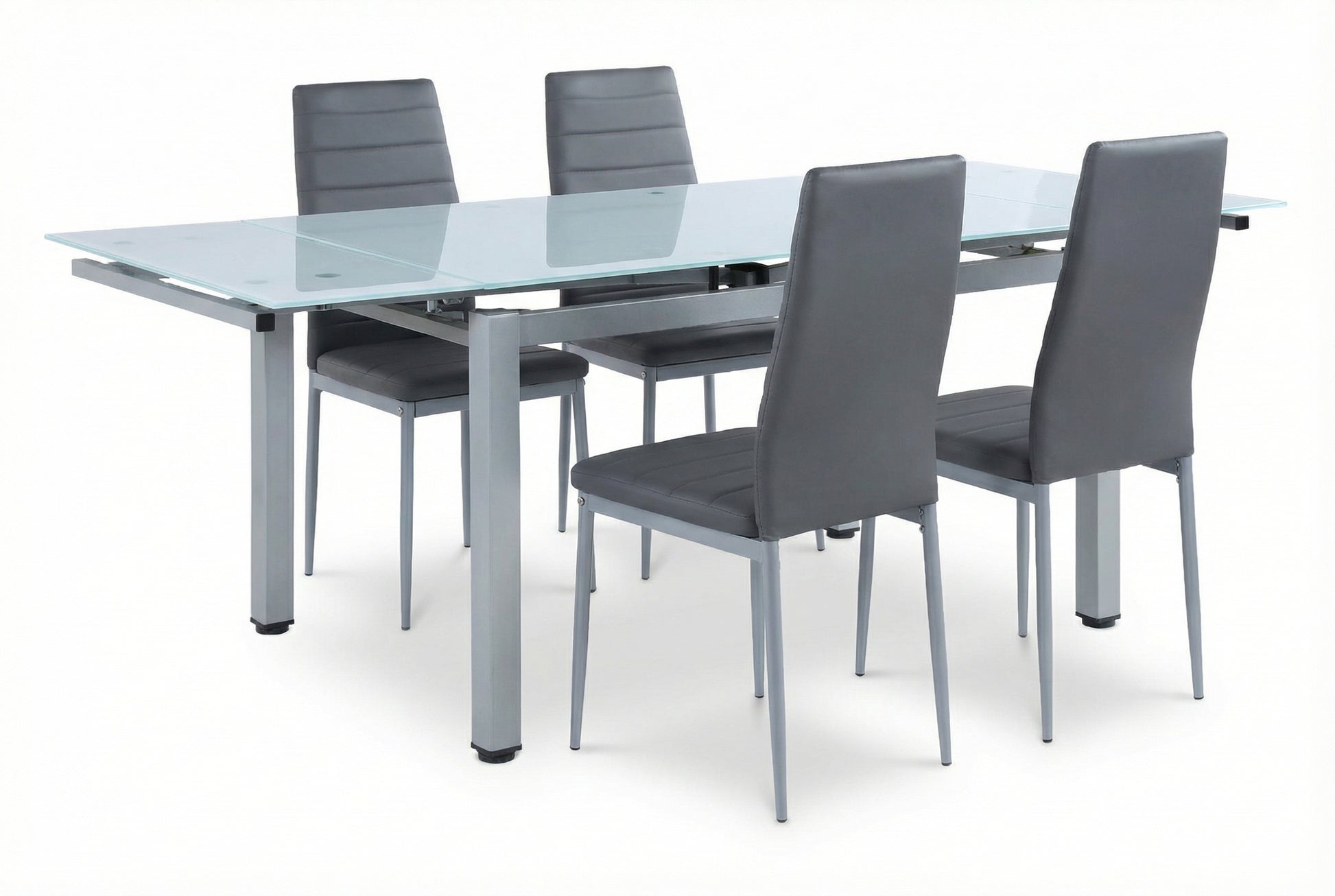 פינת אוכל דגם ונציה - שולחן אוכל לבן ו4 כסאות באפור