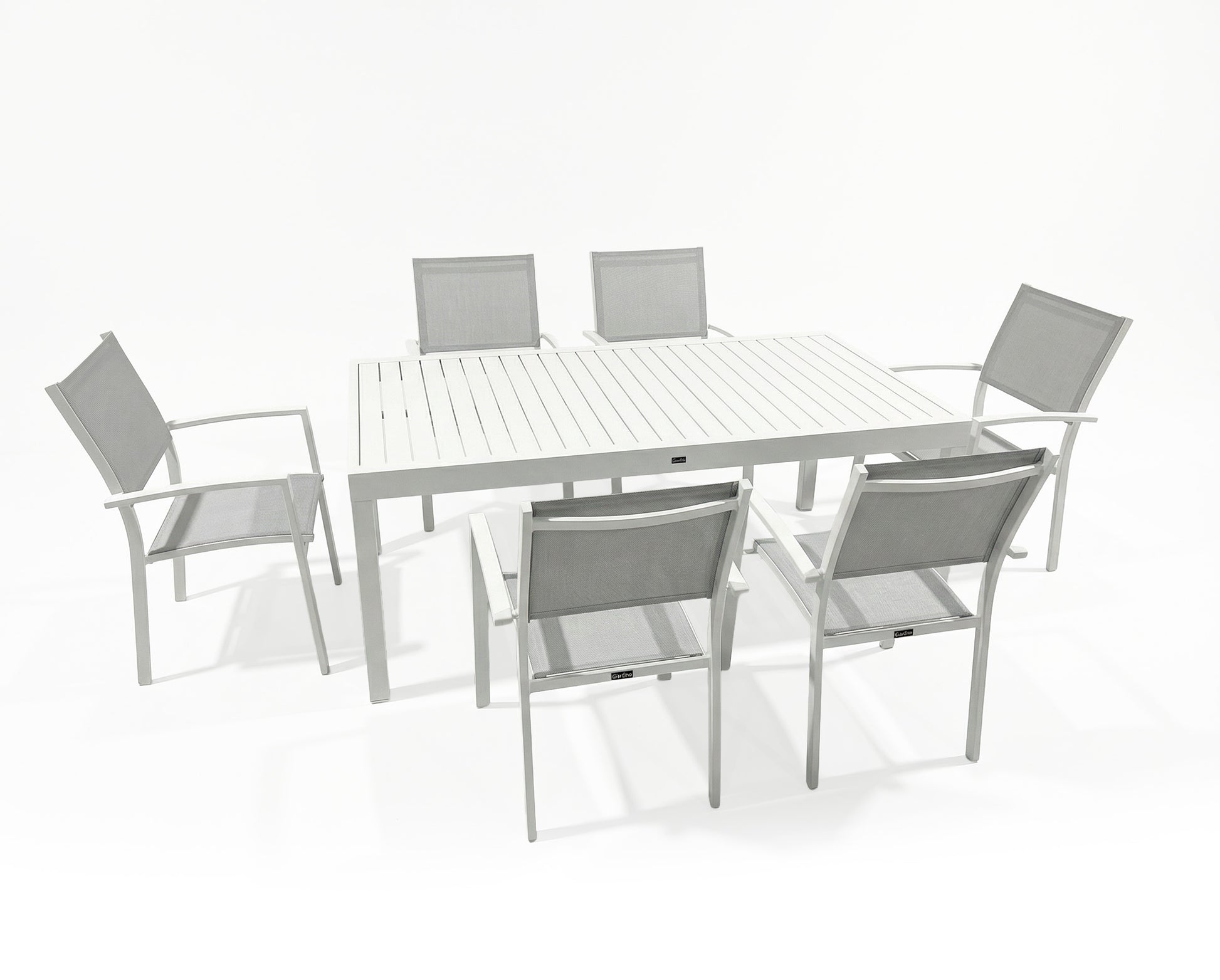 כסא אלומיניום לגינה ולמרפסת בצבע לבן עם בד סלינג 1*2 בצבע לבן בשילוב אפור.