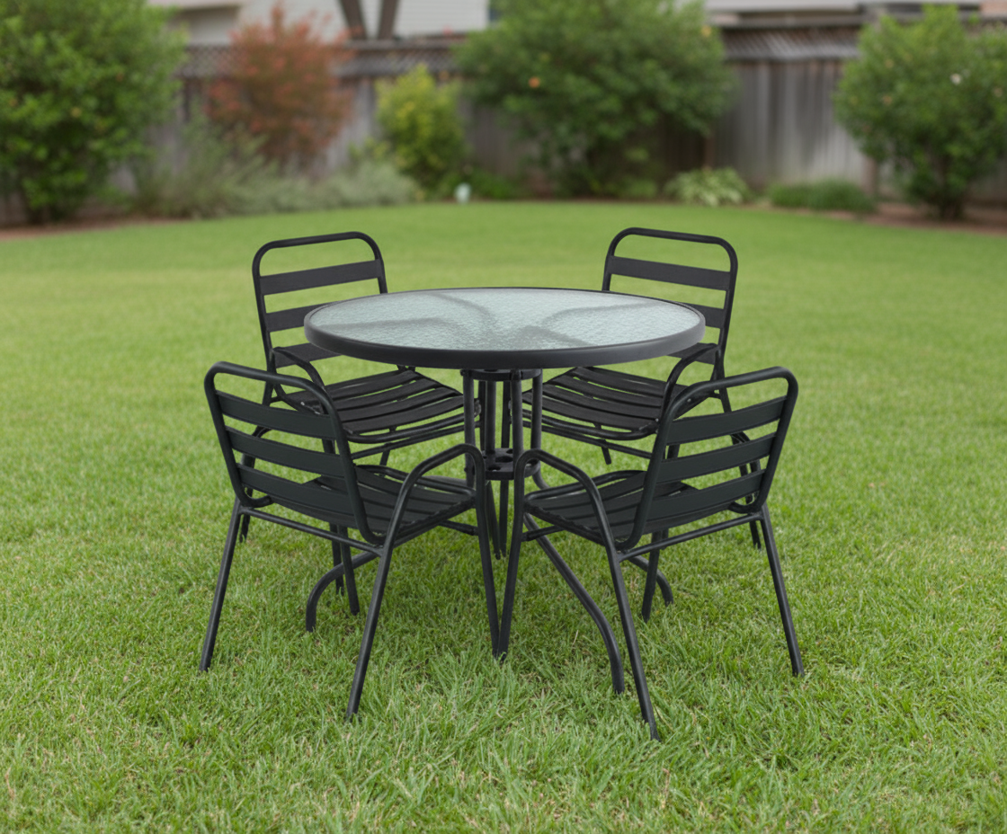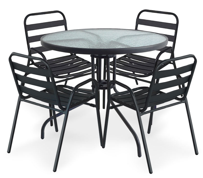 סט שולחן מתכת עגול 90 ס"מ ניו-יורק + 4 כסאות דנוור מתכת אפור כהה