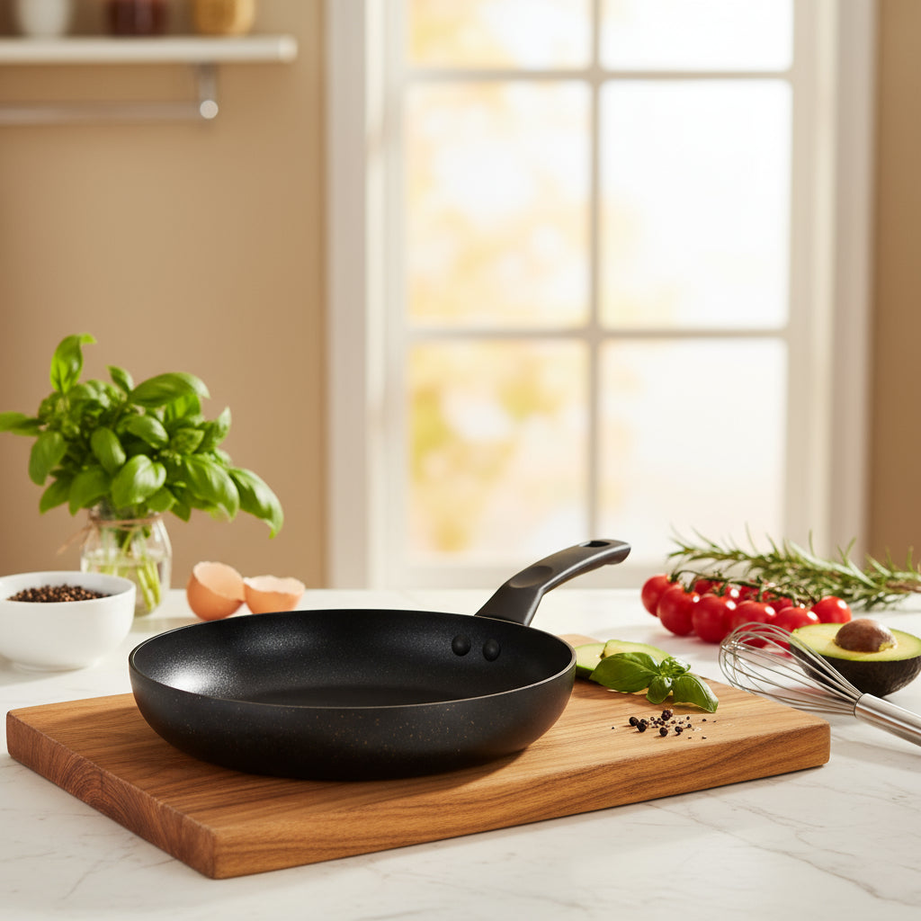 מחבת 28 ס"מ מסדרת OPTIMA. עשויה מאלומיניום רב שכבתי, עם ציפוי Non Stick איכותי בגימור דמוי שיש, המונע את הידבקות המזון ומעודד שימוש מופחת בשמן.