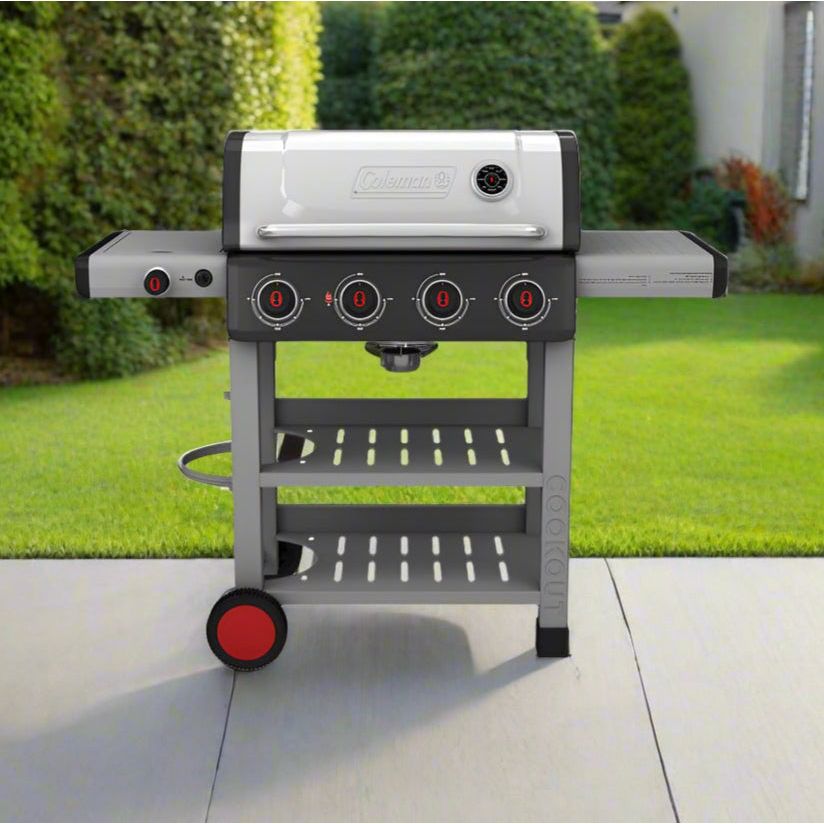 גריל גז איכותי מבית קולמן. בעל 4 מבערי נירוסטה איכותיים, רשתות צליה יצוקות עם ציפוי פורצלן. הצתה מכאנית פייזואלקטרית אמינה ועמידה ותושבת ייעודית להתקנת מיכל גז 5 ק"ג סטנדרטי.