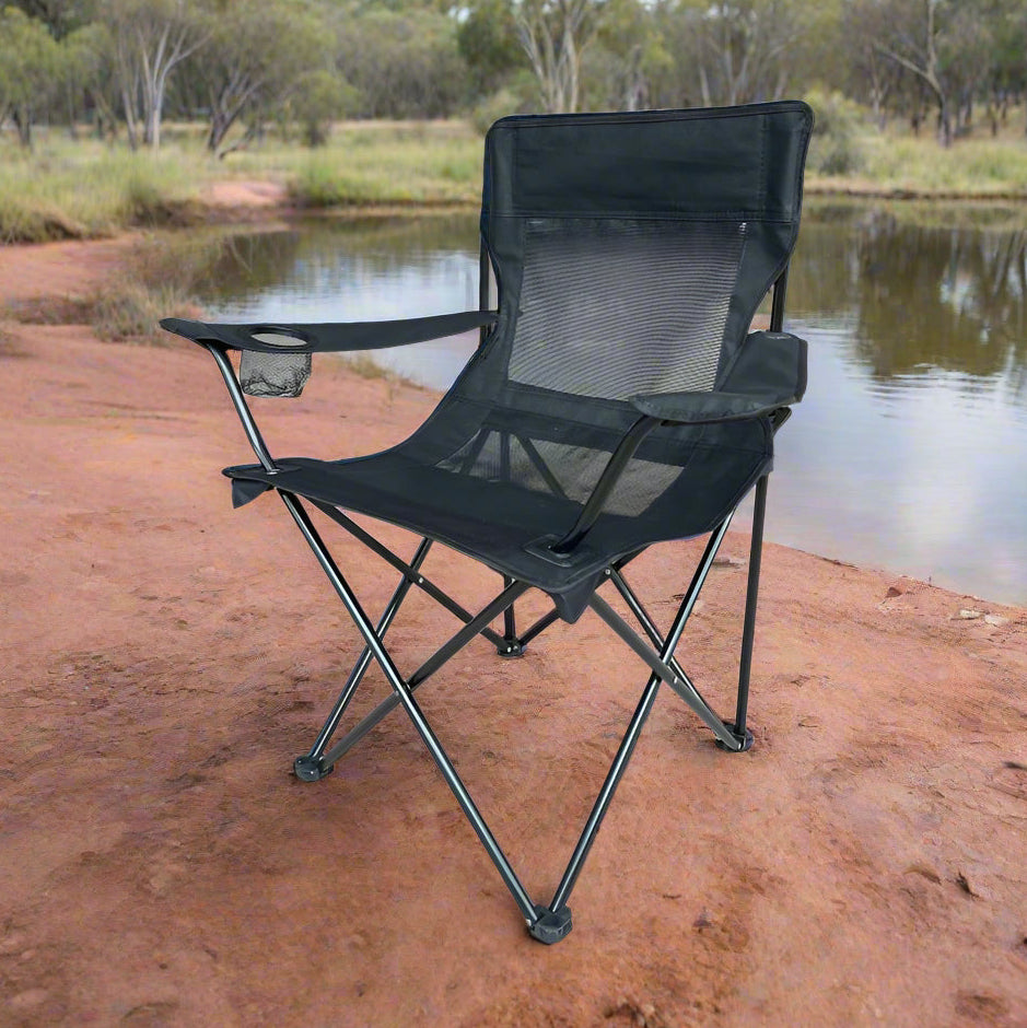 איכותי עם ידיות משענת ומחזיק לכוס שתייה. מתאים לקמפינג / חוף הים פיקניק וכו'. שלדת מתכת