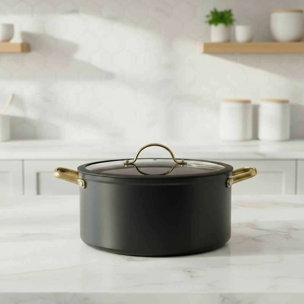סיר 14*28 ס"מ, 8.2 ליטר, בצבע שחור עם ידיות זהב של Platinum.