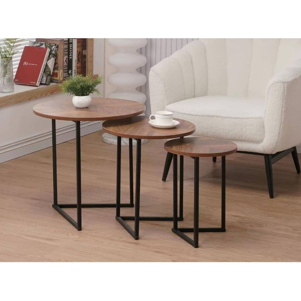 סט של 3 שולחנות עגולים. פלטות עשויות עץ MDF, רגליים ברזל.