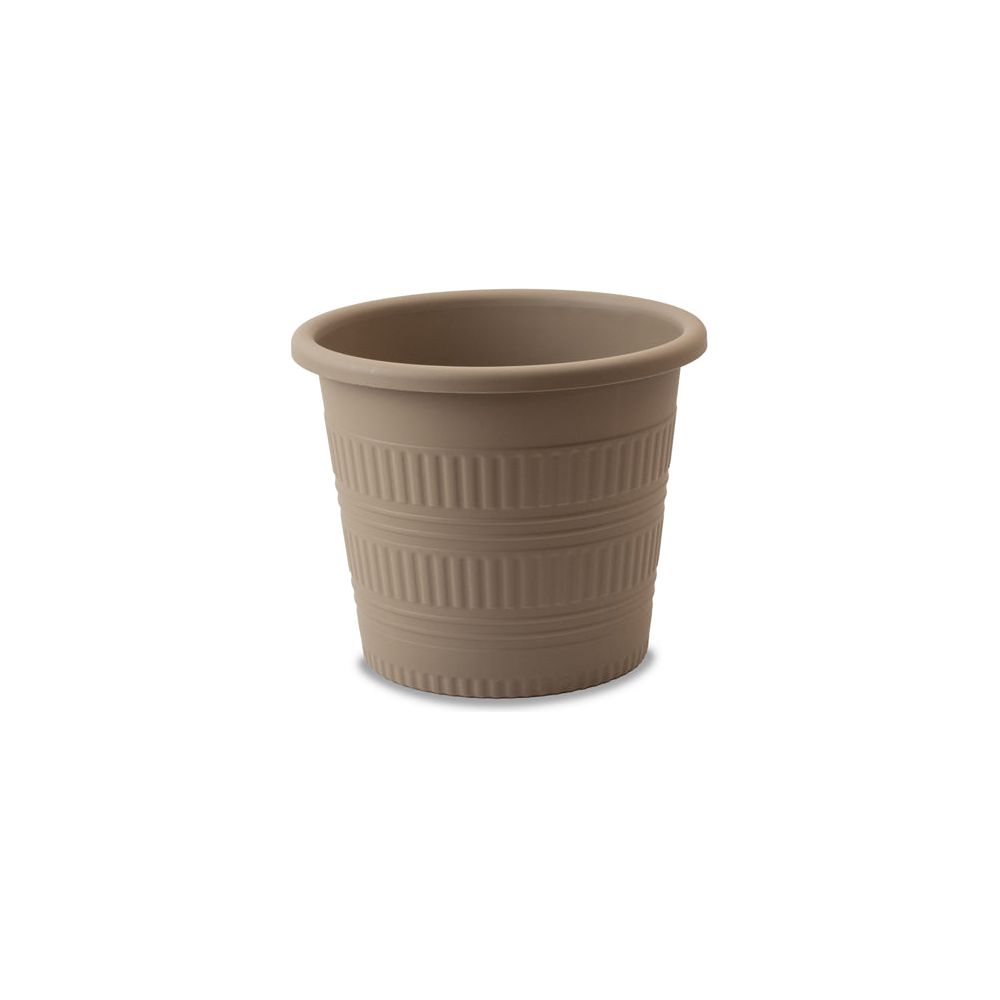 אדנית פלסטיק עגולה למרפסת ולגינה, עשויה פלסטיק.
