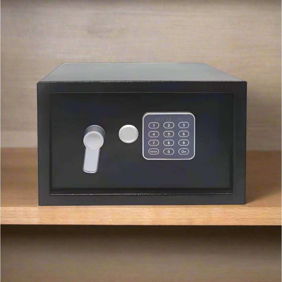 כספת דיגיטלית עם לוח מקשים להפעלת הכספת, מופעלת על ידי קוד בין 3-8 ספרות. בעלת גוף מפלדה ובריחים בקוטר 16 מ""מ. שכבת מגן רכה בתחתית הכספת לשמירה על חפצי ערך.