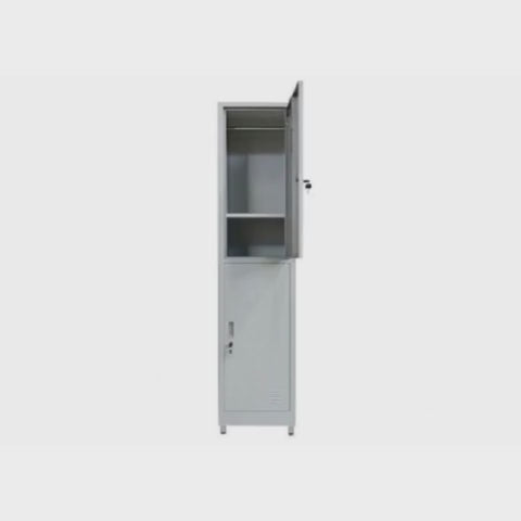 ארון מתכת מחברת FIXER דגם "פלוטו" מחולק ל-2 תאי אחסון הניתנים לנעילה. בכל תא מדף, מתלה ומראה. בדלת פתח אוורור מובנה.