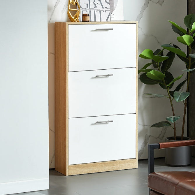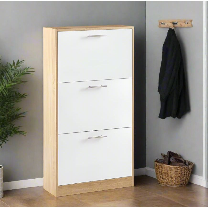 ארון נעליים שלוש דלתות, צבע עץ אלון ולבן