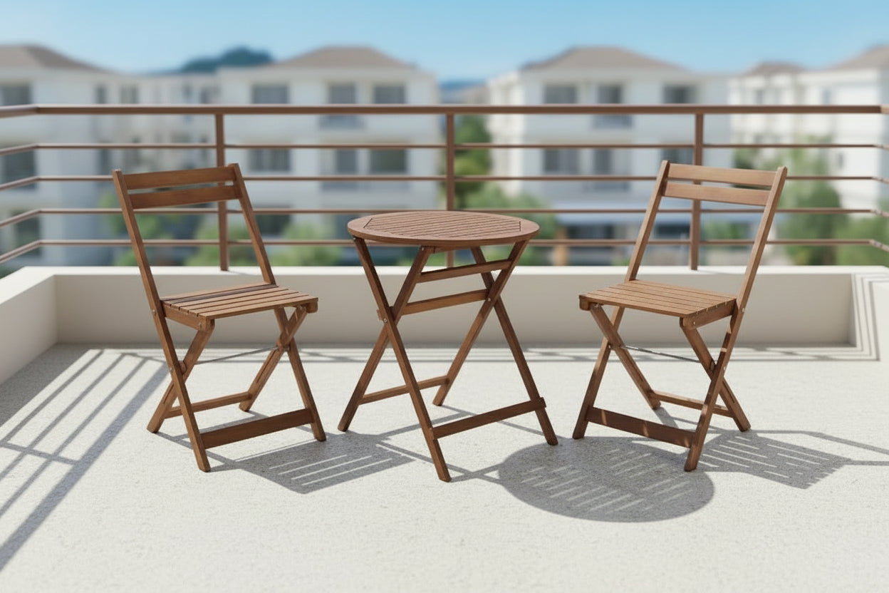 הסט מתקפל לאחסון נח. שולחן עגול.
