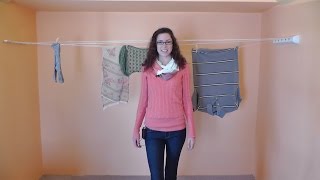 מורכב מ-5 כבלי תליה מחוברים בפס עגינה אותו ניתן לתלות במרחק של עד 4.2 מטר מהבסיס על 2 ווים. אידיאלי לתלייה במקלחות או במרפסות ומתאים לשימוש בבית ובחוץ. התקנה קלה ופשוטה, כל החלקים הנדרשים להתקנה מצורפים באריזה. שטח תלייה כולל 21 מטר לתליית כ-1-2 מכונות כביסה. גוף המתקן עשוי פלסטיק איכותי, כבלים חזקים ועמידים לאורך שנים. המתלה כולל חוגת שליטה ומתיחה כך שחוטי התלייה לא שוקעים בעת ייבוש הבגדים. לאחר השימוש בו, כל שעליך לעשות הינו להרים את הקצה המחובר לקיר הנגדי והמנגנון מושך בחזרה באופן אוטומטי את החוטים פנימה.