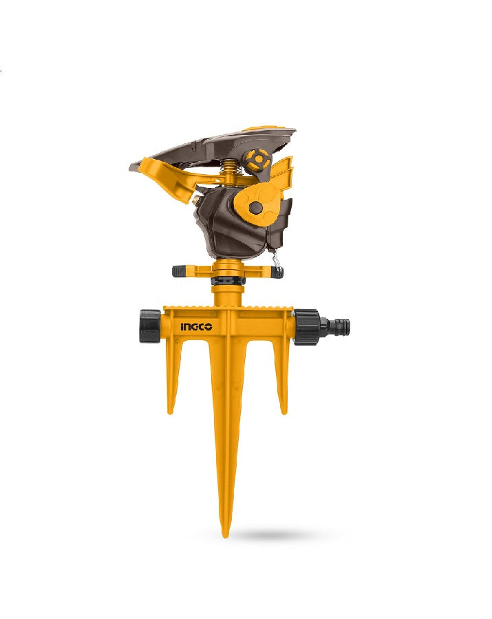 ממטרה עשויה פלסטיק איכותי, עם יתד לחיזוק הממטרה באדמה / דשא. עם ראש מסתובב 360 מעלות. כוללת מתאם לצינור 3/4".