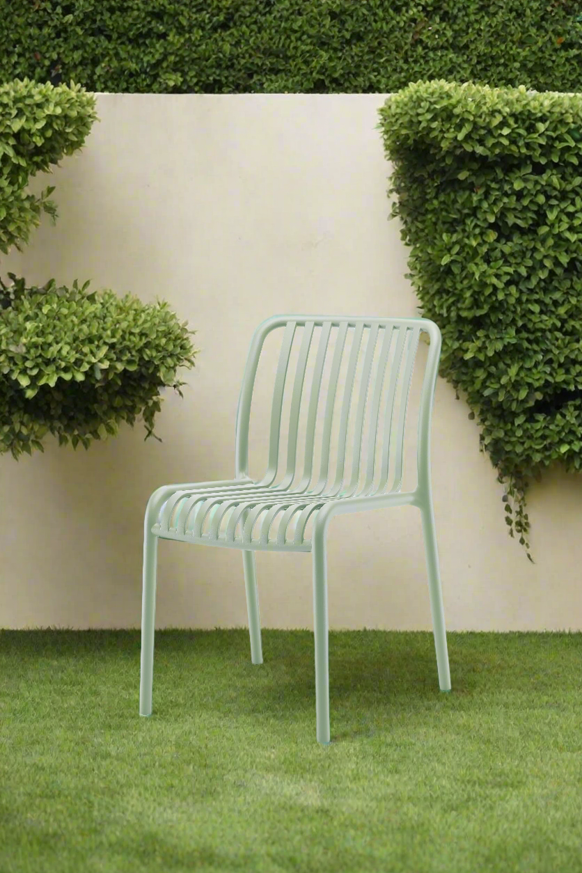 כסא פלסטיק איכותי לגינה, בצבע ירוק בהיר.