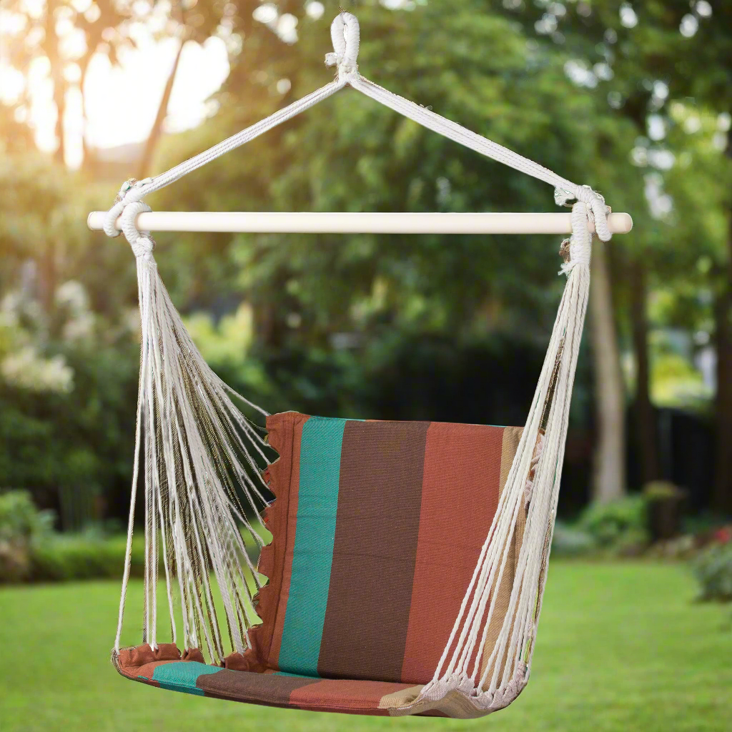 ערסל ישיבה כולל מקל לקמפינג וטיולים, עשוי בד מרופד איכותי, בצבע חום צבעוני, בד עמיד למשקל העמסה עד כ 200 ק"ג.