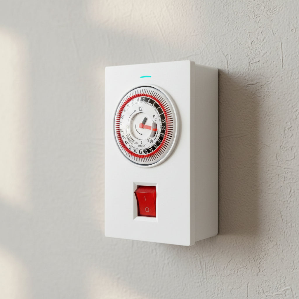 טיימר לדוד חימום בעל נורת חיווי אקטיבית, הנדלקת רק כאשר חשמל זורם לגוף החימום.