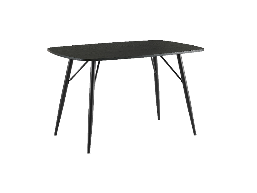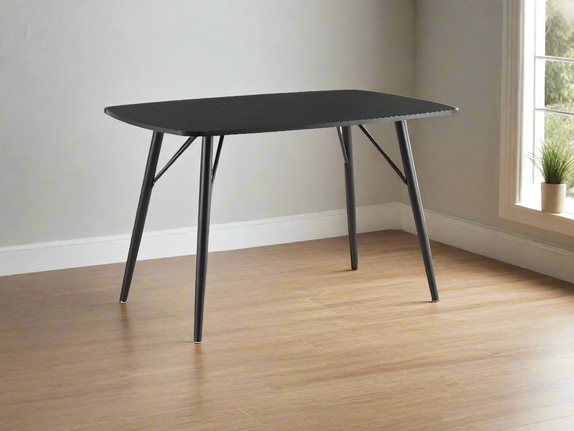 שולחן אוכל המורכב מפלטה MDF בציפוי מלמין, רגלי מתכת שחורות בגימור מט