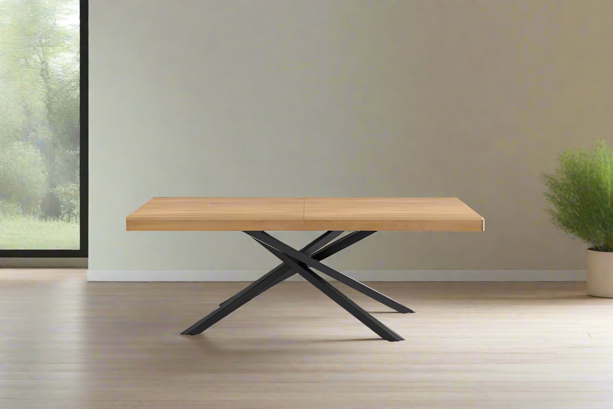שולחן אוכל לנה 75*100*200(240) טבעי ר.מתכת שחורה