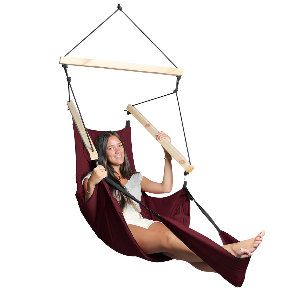 ערסל ישיבה תלוי, עשוי מבדי חוץ איטלקיים איכותיים, מציע חווית ישיבה מפנקת בשילוב מוטות מעץ מסיבי ורגלית להנחת הרגליים. הערסל מתאים לכל הגילאים ומגיע במגוון צבעים מדליקים. המושב מרופד ועשוי משתי שכבות, מה שמבטיח נוחות מרבית. החבלים עמידים בשמש ובעלי חוזק קריעה גבוה, ויכולים לשאת משקל של עד 150 ק"ג.