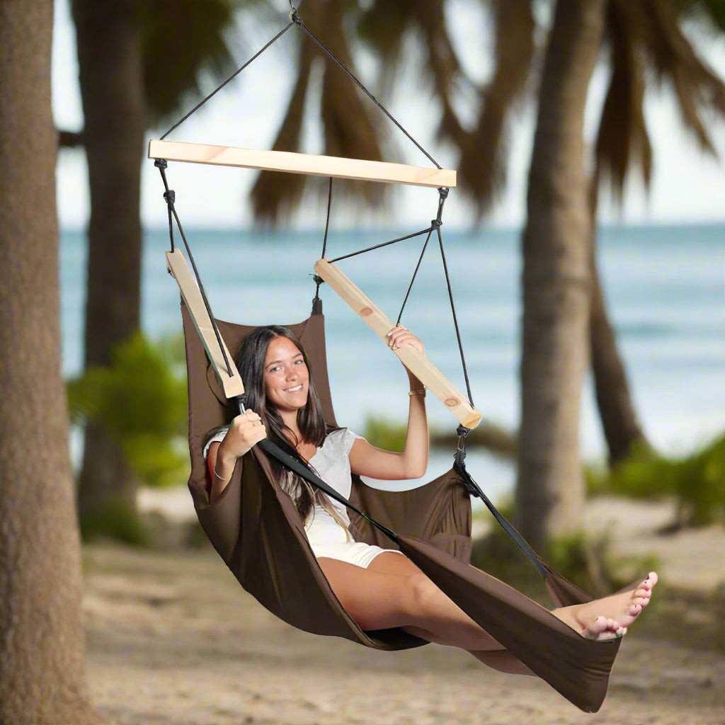 ערסל ישיבה תלוי, עשוי מבדי חוץ איטלקיים איכותיים, מציע חווית ישיבה מפנקת בשילוב מוטות מעץ מסיבי ורגלית להנחת הרגליים. הערסל מתאים לכל הגילאים ומגיע במגוון צבעים מדליקים.