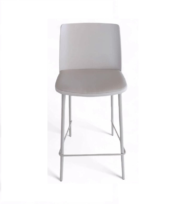 כיסא בר בעיצוב יוקרתי בריפוד דמוי עור בשילוב רגלי מתכת בצבע לבן