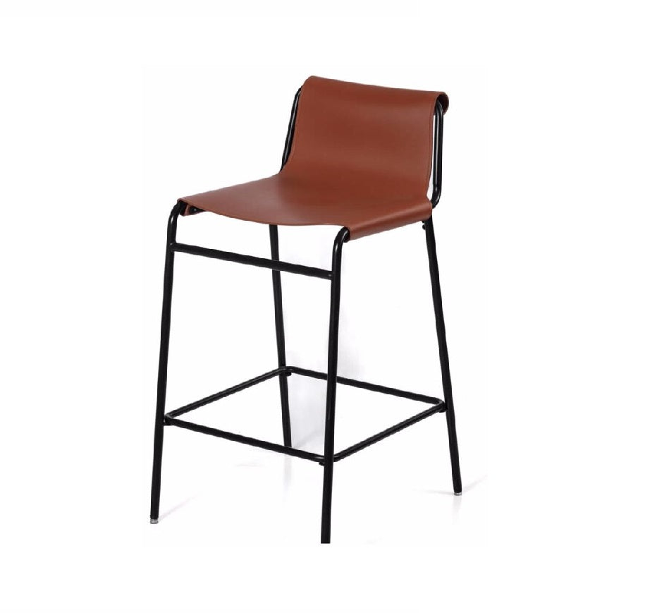 כיסא בר בעיצוב מודרני למראה מינימליסטי. הכיסא עשוי בד דמוי עור בשילוב רגליים מברזל בצבע שחור.