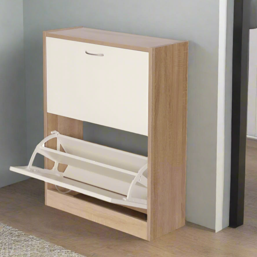 ארון נעליים בעל 2 תאים בגודל זהה, כאשר לכל תא יש מדף המחלק את התא לשניים לשמירה על סדר מירבי.