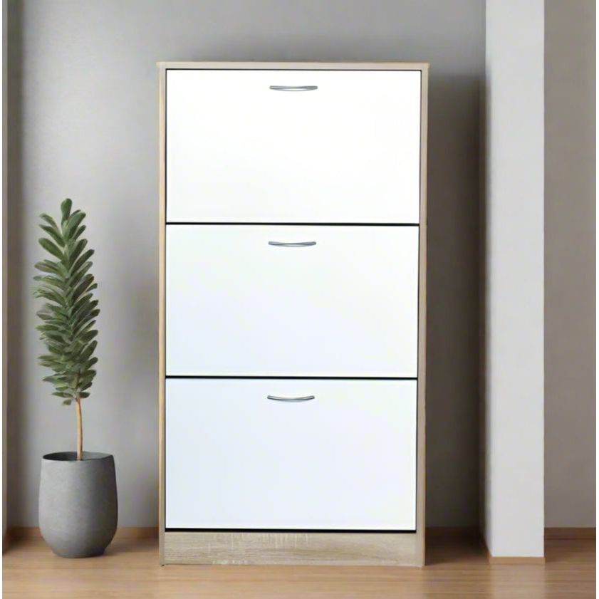 ארון נעליים בעל 3 תאים בגודל זהה, כאשר לכל תא יש מדף המחלק את התא לשניים לשמירה על סדר מירבי. דלתות התאים נפתחות כלפי מטה (ניתן לראות בתמונות). הארון שימושי ופרקטי, נותן מראה אסתטי ומסודר לחלל החדר.