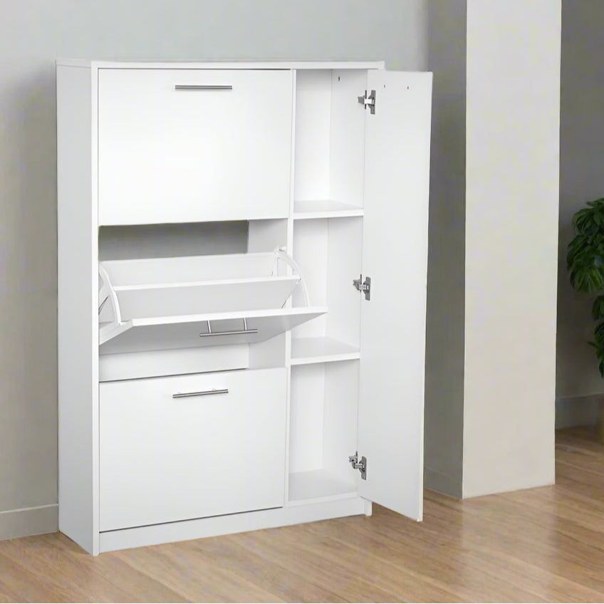 ארון נעליים 3 תאים+אחסון צבע לבן