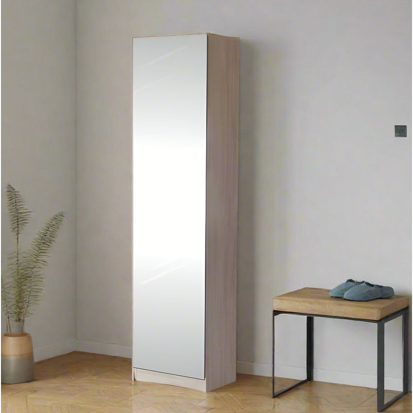 ארון נעליים עם דלת מראה, בעל 8 תאים גדולים ומרווחים לאיחסון של נעליים. הארון מעוצב בצורה אלגנטית כך שיוכל להשתלב בכל פינה בבית. הארון מתאים ל 24 זוגות נעליים.