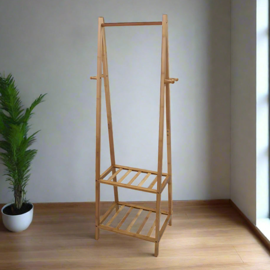 מתלה בגדים ומעילים מעוצב, בעל פס תליה עליון בשילוב זוג מדפים לאחסון של נעליים, כובעים או כל אקססוריז אחרים. מתלה אופנתי ויציב שמתאים לכניסה לבית, חדר השינה או חדר ארונות.