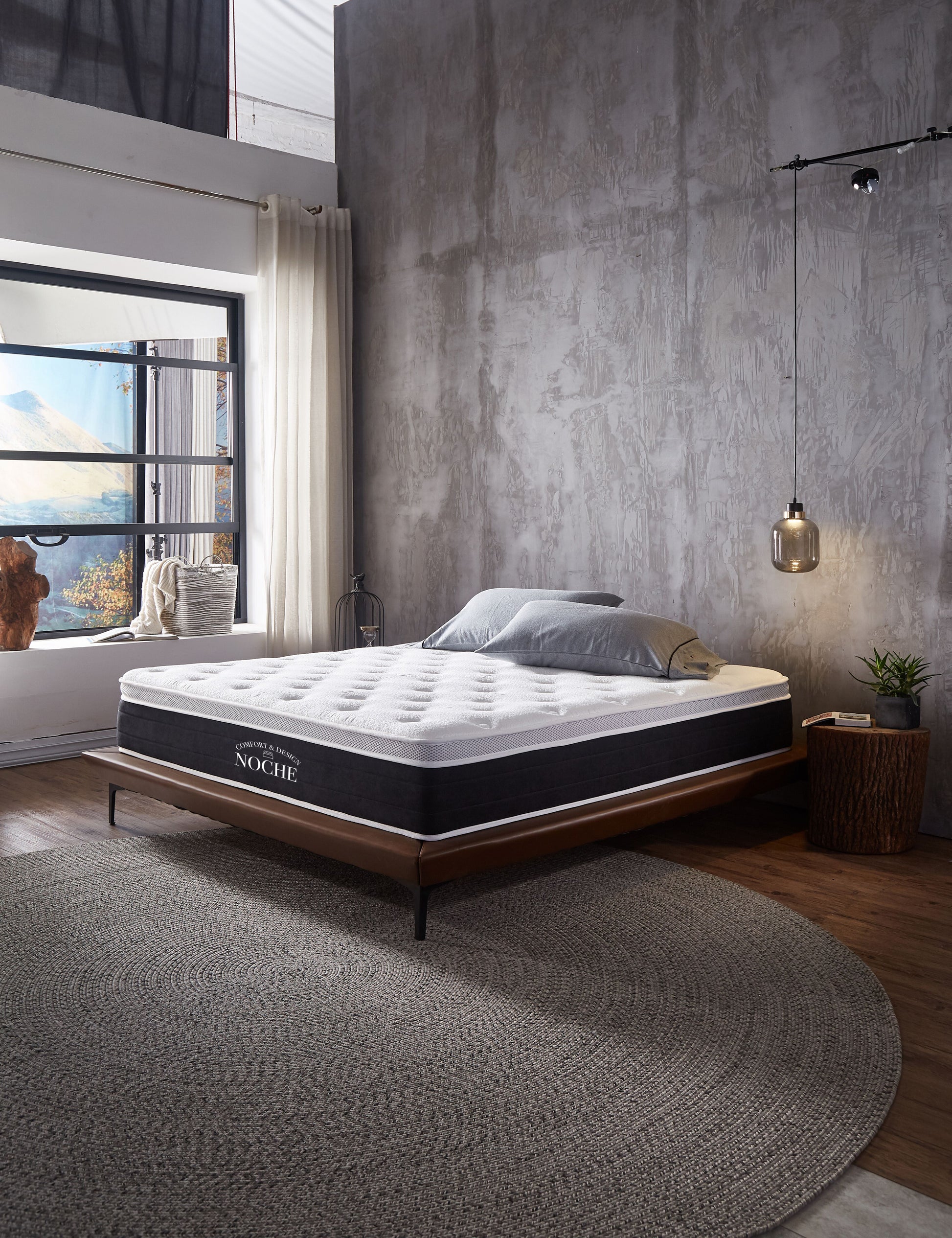 מזרון נוחות מרופד בבד סרוג איכותי, בשילוב ריפוד פוליאוריטן, המשלב בתוכו שכבות בידוד נוחות במיוחד ומערכת קפיצים מבודדים, המעניקים תמיכה מושלמת לגוף במהלך השינה.