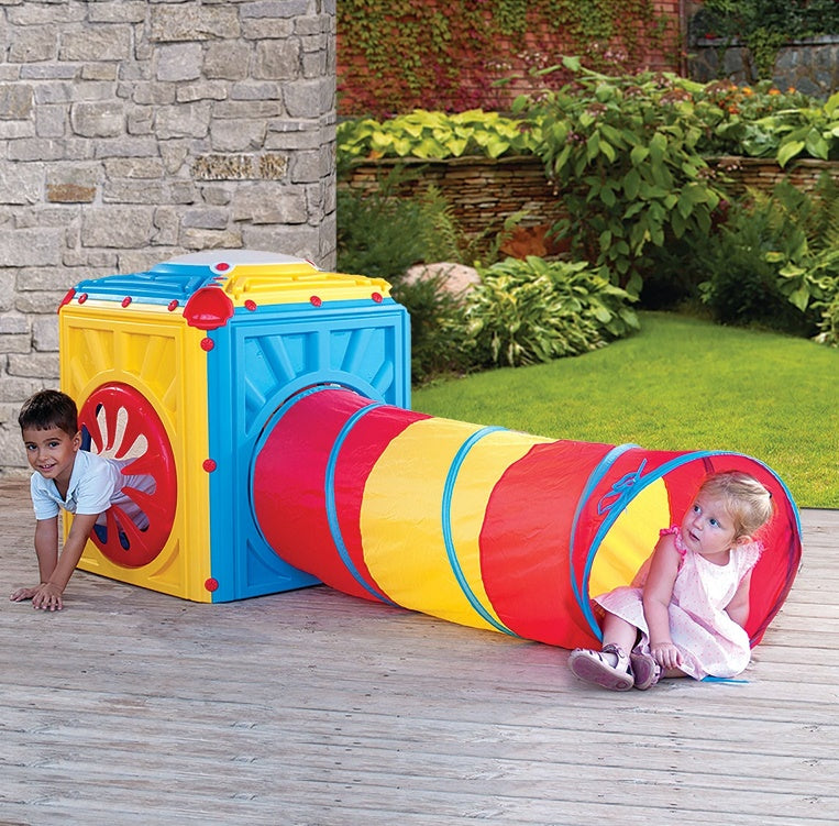 קוביית משחק עם מנהרה שניתן למקם במרפסת, בחצר או בתוך הבית.