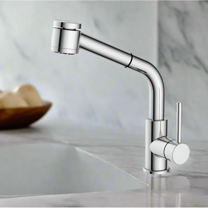 ברז מטבח נשלף גבוה מעוצב. גוף הברז עשוי BRASS, הידית עשויה זינק.