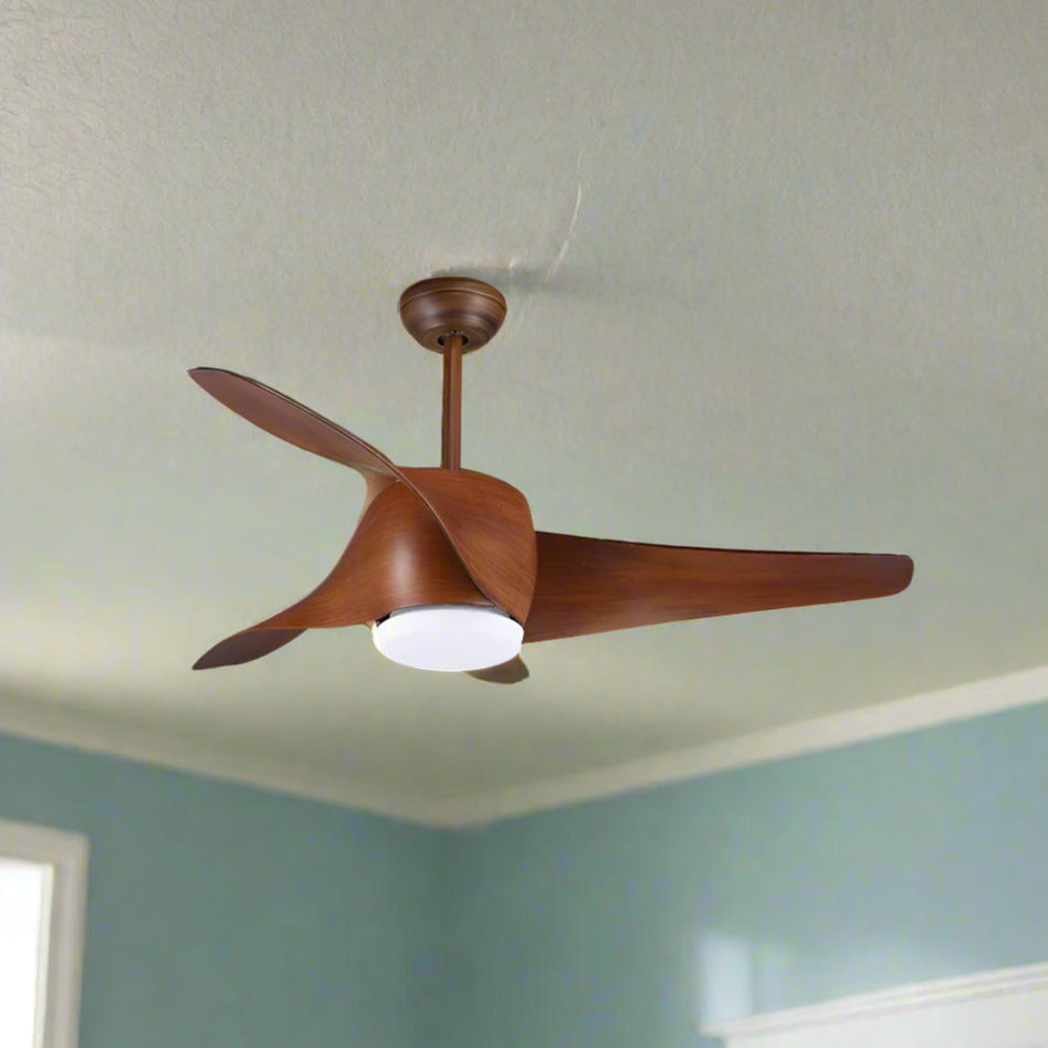 מאוורר תקרה דקורטיבי בצבע עץ "52 עם תאורת LED 15W.