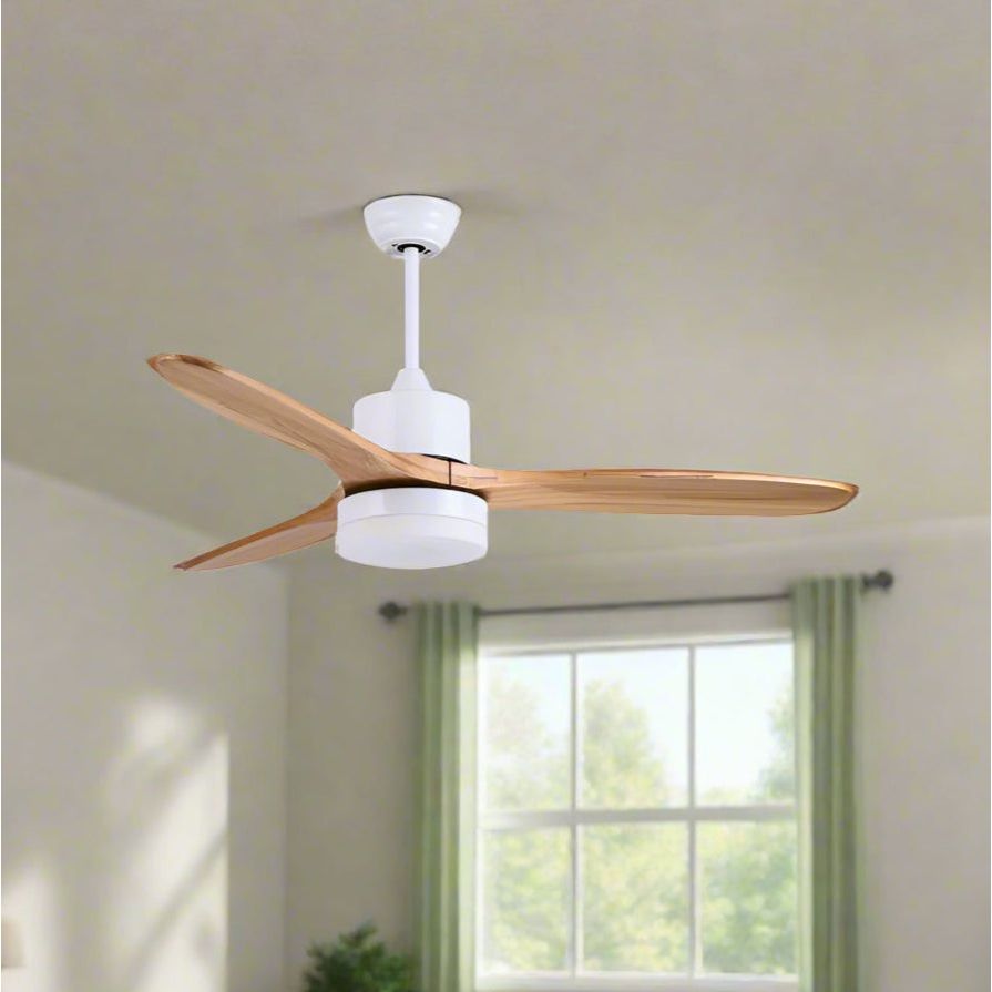 מאוורר תקרה דקורטיבי בצבע לבן בשילוב עץ "48 עם תאורת LED 15W.