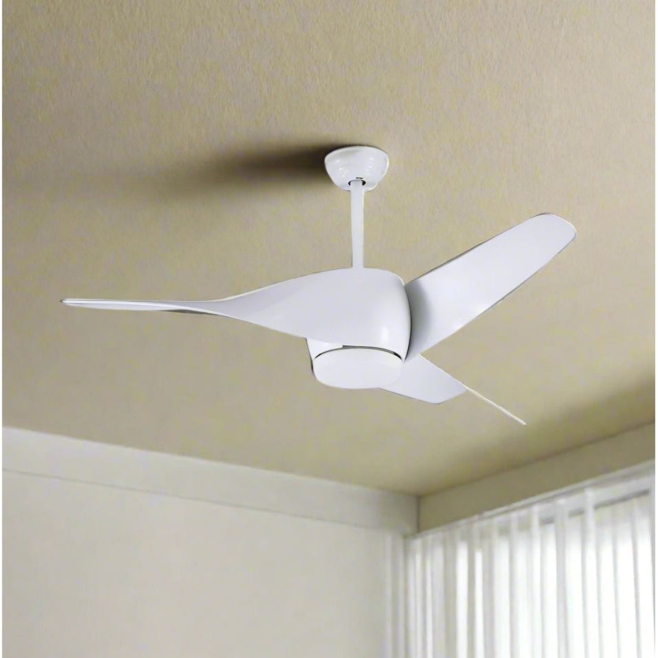 מאוורר תקרה דקורטיבי בצבע לבן בגודל 52" עם תאורת LED 15W. למאוורר 3 כנפיים, המקנות פיזור מקסימלי של האוויר בחדר. ההפעלה באמצעות שלט רחוק, עם אפשרות לשנות את צבע התאורה: לבנה, צהובה או מעורבת.