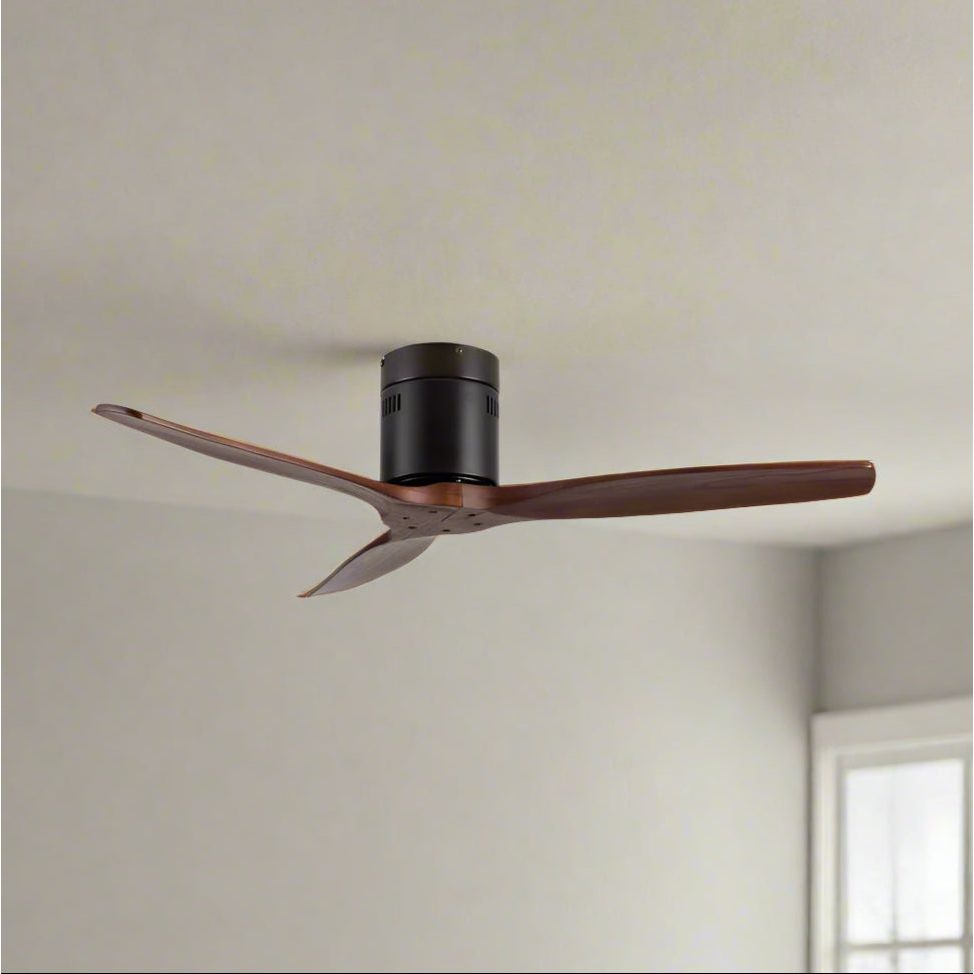 מאוורר תקרה מעוצב 3 כנפיים "48 מסדרת בורה גוף בגוון קפה כהה וכנפיים בגוון אגוז כהה